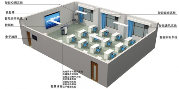 主要模块:课堂/到离校无感知考勤、互动录播中控,高度集约、智慧课堂多端多屏互动、物联网中控无线免布线、智能IP广播利旧原音箱